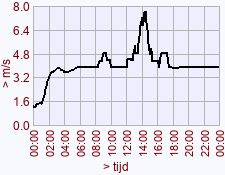 - Gemiddelde waarde van windstoot voor deze dag het vorige jaar: 4,0 (00:00)