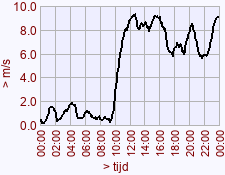 - Maximum waarde windstoot voor deze dag het vorige jaar: 11,4 (13:15)