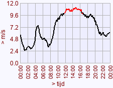 - Gemiddelde waarde van windstoot voor deze dag het vorige jaar: 7,2 (00:05)