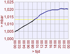 - Minimum waarde luchtdruk voor deze dag het vorige jaar: 1005,3 (00:05)