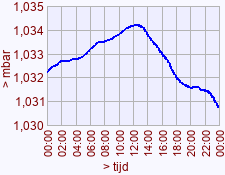 - Maximum waarde luchtdruk voor deze dag het vorige jaar: 1034,3 (11:55)