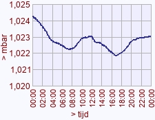 - Maximum waarde luchtdruk voor deze dag het vorige jaar: 1024,2 (00:05)
