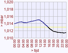 - Maximum waarde luchtdruk voor deze dag het vorige jaar: 1015,2 (11:10)