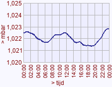 - Maximum waarde luchtdruk voor deze dag het vorige jaar: 1023,0 (23:00)
