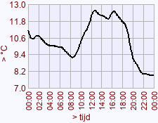 - Maximum waarde temperatuur voor deze dag het vorige jaar: 12,7 (12:00)