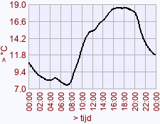 - Maximum waarde temperatuur voor deze dag het vorige jaar: 18,6 (16:20)
